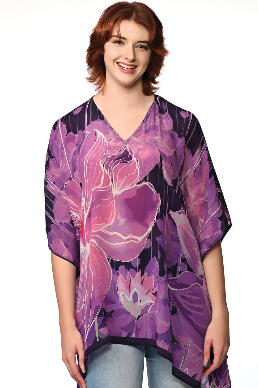Our Kamala Lotus Tops are made with 100% Cupro material, which is a luxurious, sustainable fabric that is produced from repurposed cotton waste in a closed loop system. This elegant caftan top has the look and feel of silk, but the lightness, easy care, and breathability of cotton. These fair trade tunics come in a range of stunning lotus prints, and are a free size style that is designed for a comfortable and elegant fit up to XXL size.